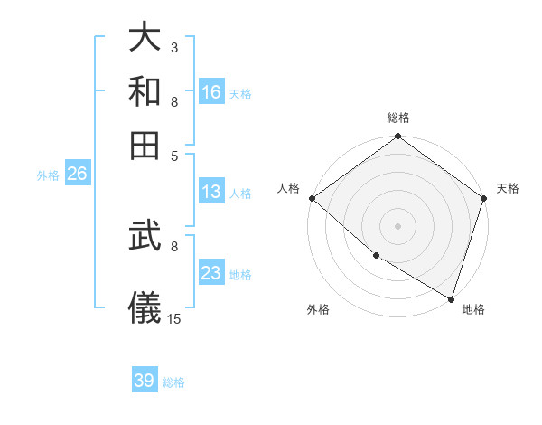 大和田 武儀さんを姓名の画数から五運を鑑定