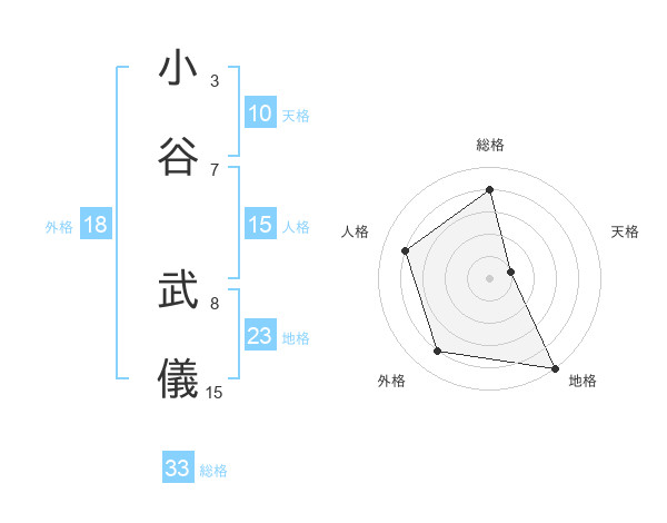 小谷 武儀さんを姓名の画数から五運を鑑定