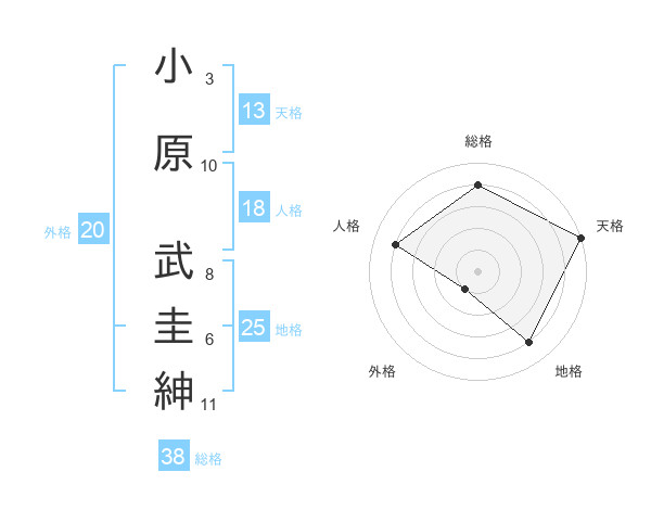 小原 武圭紳さんを姓名の画数から五運を鑑定