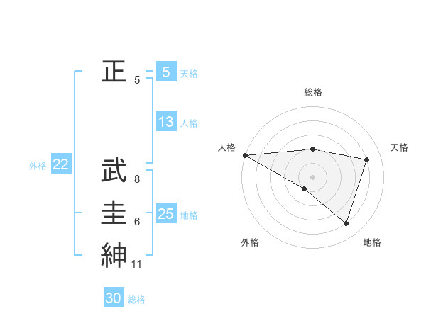 正 武圭紳さんを姓名の画数から五運を鑑定
