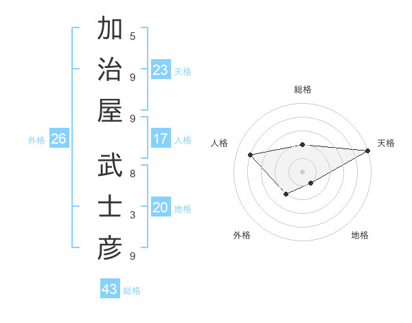 加治屋 武士彦さんを姓名の画数から五運を鑑定