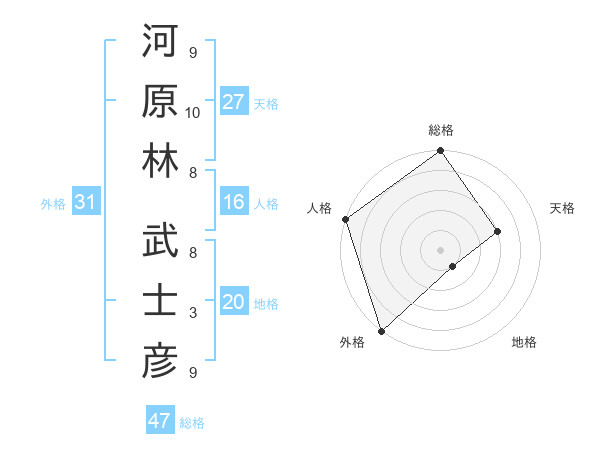 河原林 武士彦さんを姓名の画数から五運を鑑定