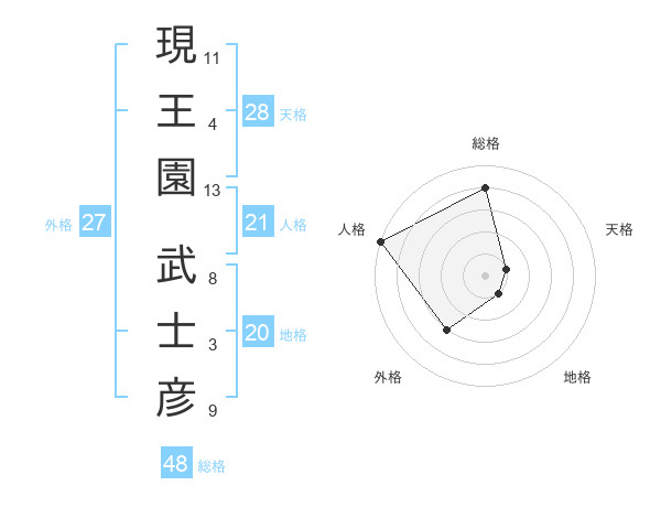 現王園 武士彦さんを姓名の画数から五運を鑑定