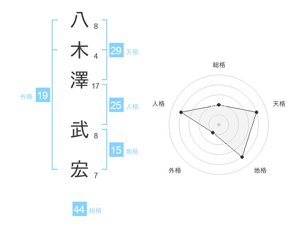 八木澤 武宏さんの総格は44画の2点!