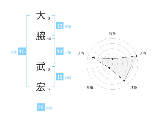 大脇 武宏さんを姓名の画数から五運を鑑定