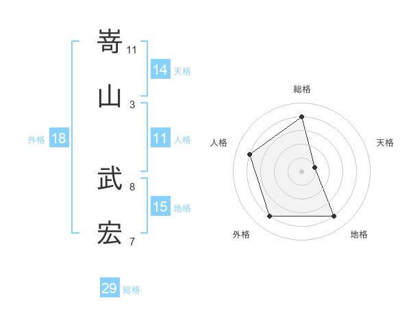嵜山 武宏さんを姓名の画数から五運を鑑定