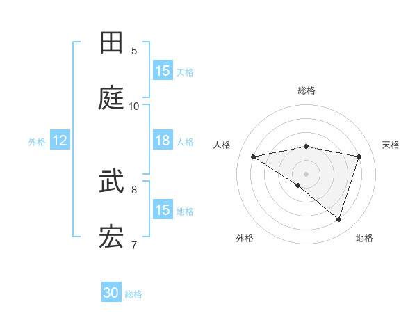 田庭 武宏さんを姓名の画数から五運を鑑定