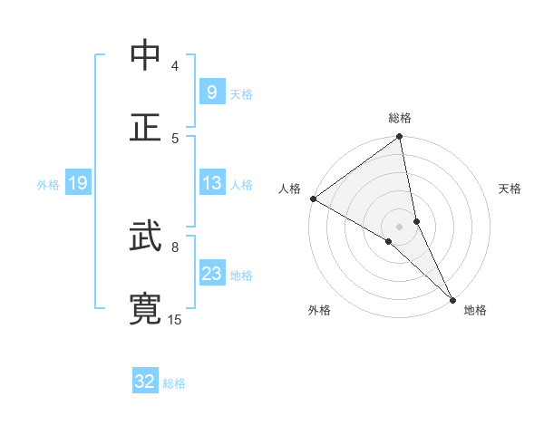 中正 武寛さんの総格は32画の5点!