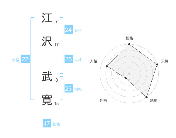 江沢 武寛さんの総格は47画の5点!