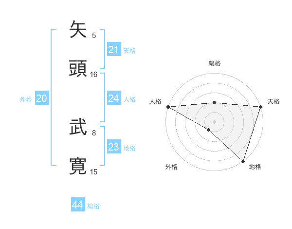矢頭 武寛さんの天格は21画の5点!