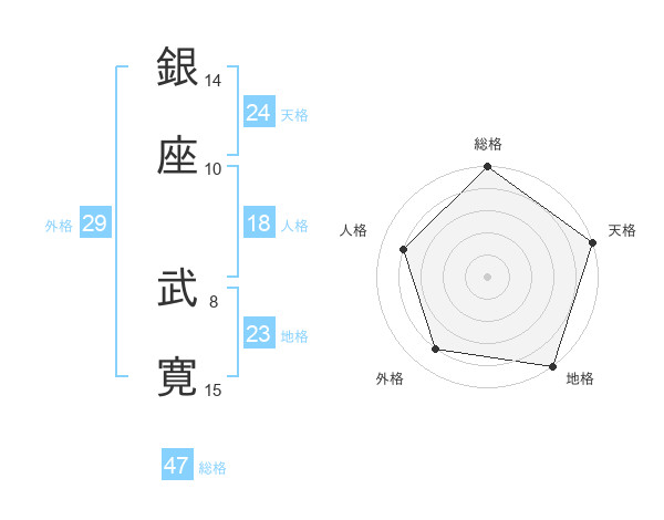 銀座 武寛さんを姓名の画数から五運を鑑定