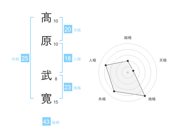 髙原 武寛さんの総格は43画の2点!