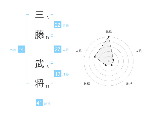 三藤 武将さんの総格は41画の5点!