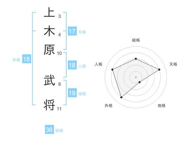 上木原 武将さんの天格は17画の4点!