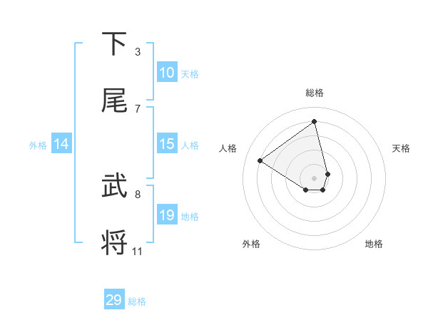 下尾 武将さんの総格は29画の4点!