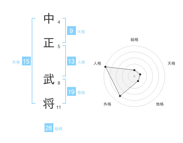 中正 武将さんの人格は13画の5点!