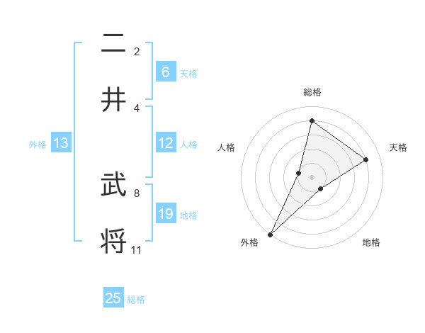 二井 武将さんの天格は6画の4点!