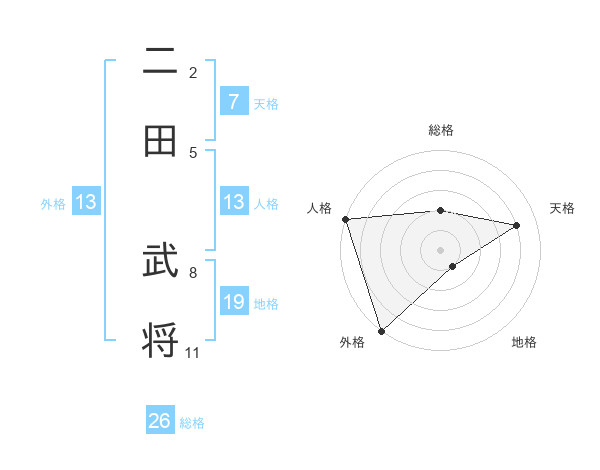 二田 武将さんの総格は26画の2点!