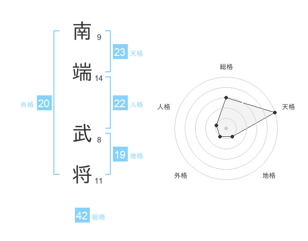 南端 武将さんの総格は42画の3点!