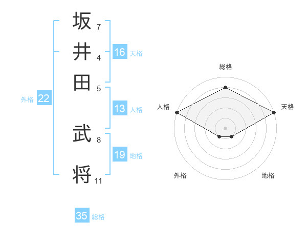 坂井田 武将さんを姓名の画数から五運を鑑定