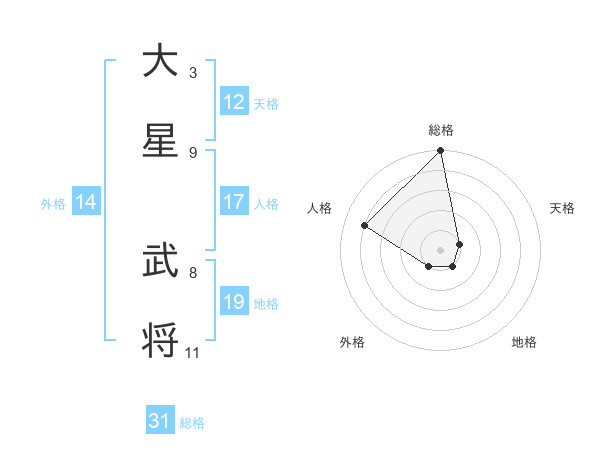 大星 武将さんの総格は31画の5点!
