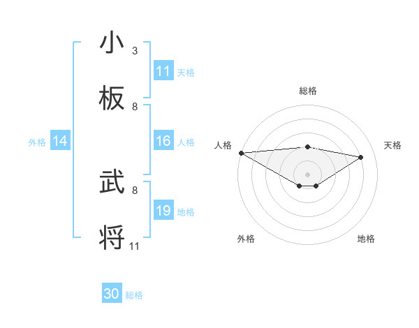 小板 武将さんの総格は30画の2点!