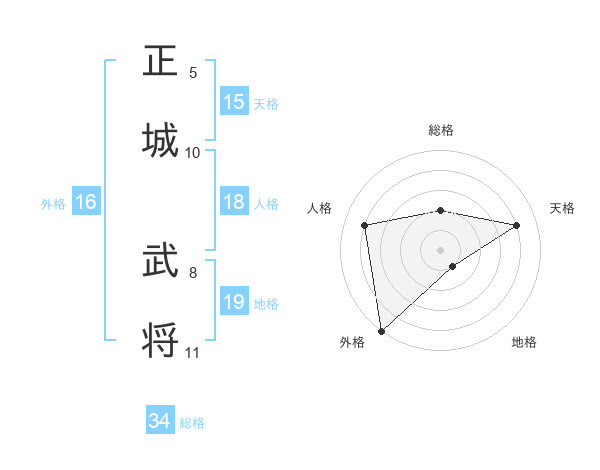 正城 武将さんの外格は16画の5点!