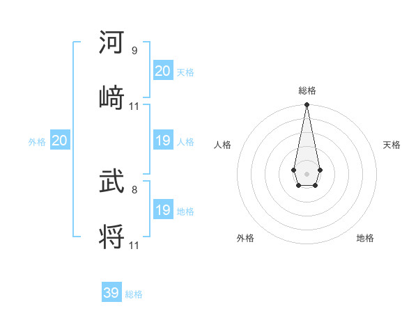 河﨑 武将さんを姓名の画数から五運を鑑定