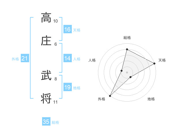 高庄 武将さんの外格は21画の5点!