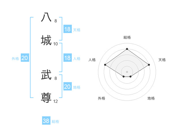 八城 武尊さんの総格は38画の4点!