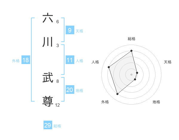 六川 武尊さんの総格は29画の4点!