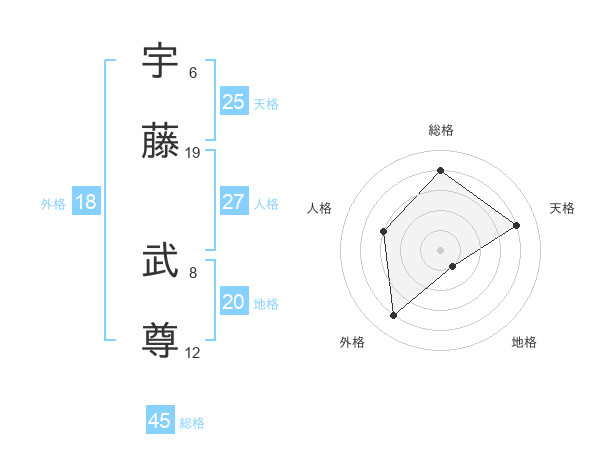 宇藤 武尊さんの総格は45画の4点!