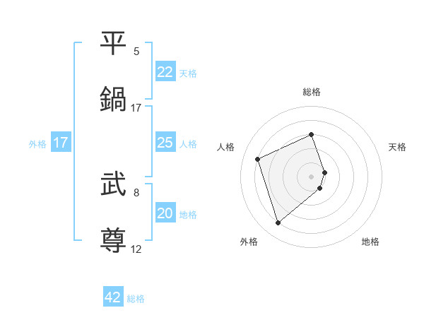 平鍋 武尊さんを姓名の画数から五運を鑑定