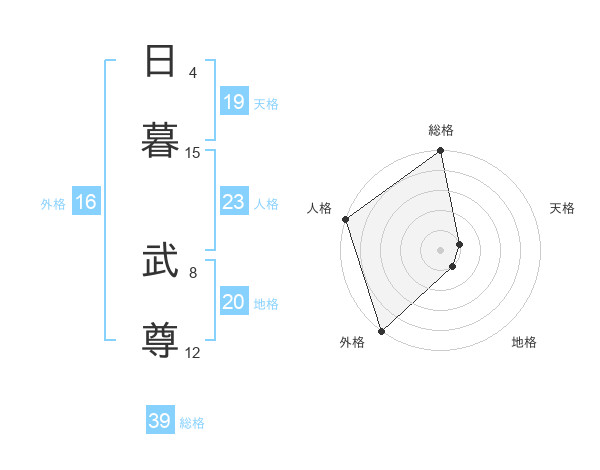 日暮 武尊さんの総格は39画の5点!