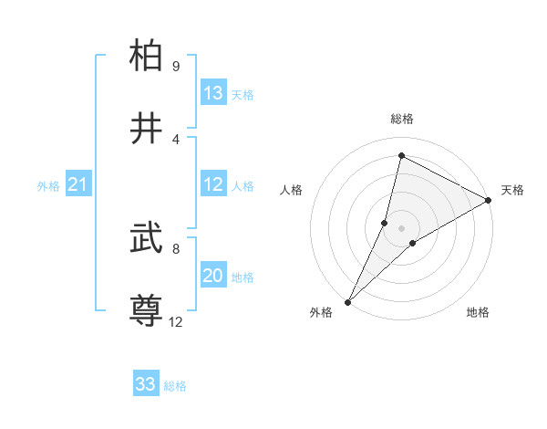 柏井 武尊さんの天格は13画の5点!