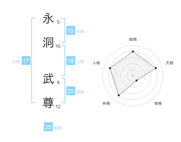 永洞 武尊さんの総格は35画の4点!