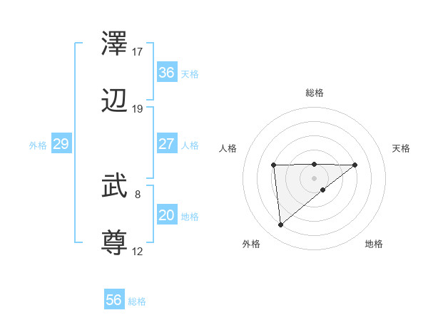 澤辺 武尊さんを姓名の画数から五運を鑑定