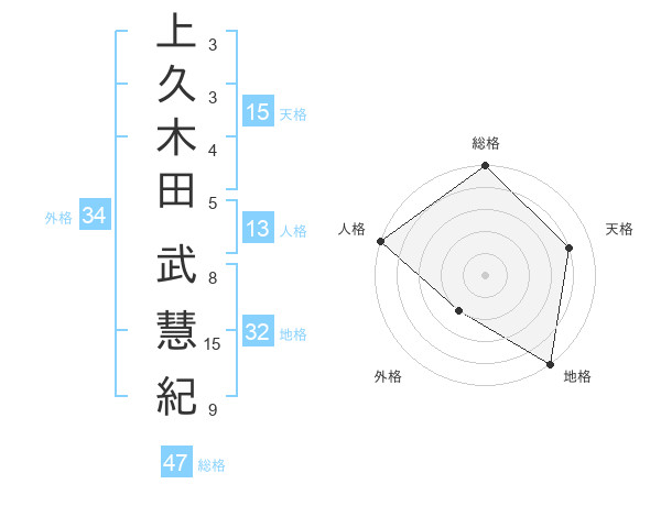 上久木田 武慧紀さんの総格は47画の5点!