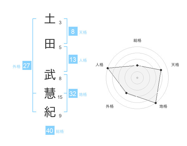 土田 武慧紀さんの外格は27画の3点!