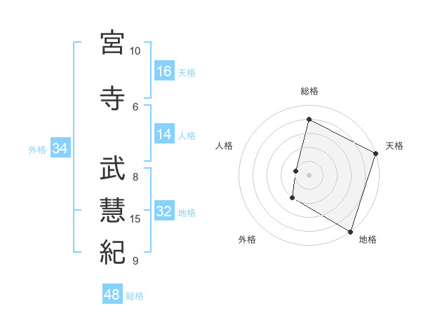 宮寺 武慧紀さんの天格は16画の5点!