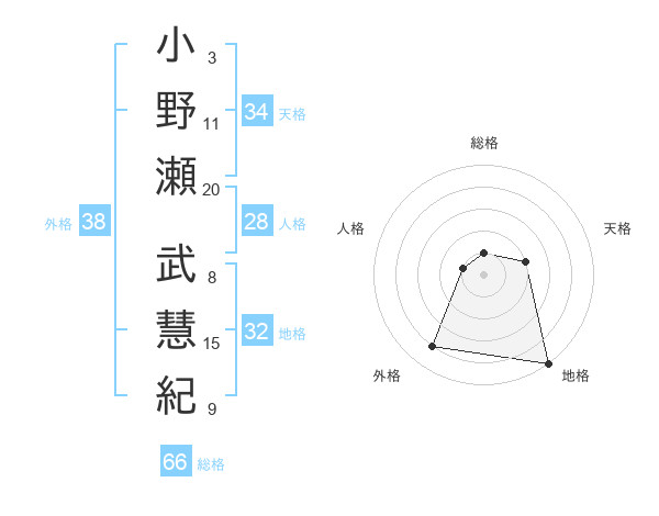 小野瀬 武慧紀さんを姓名の画数から五運を鑑定