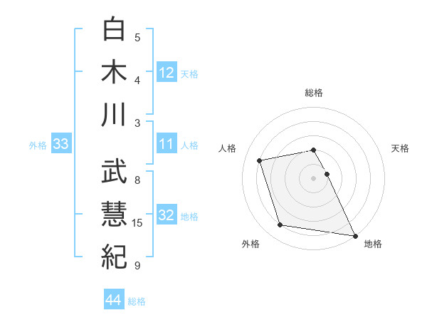 白木川 武慧紀さんを姓名の画数から五運を鑑定