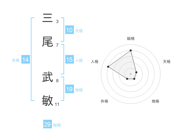 三尾 武敏さんを姓名の画数から五運を鑑定