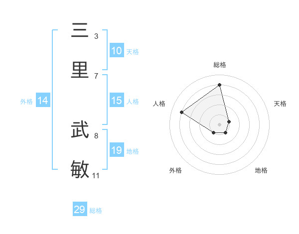 三里 武敏さんの総格は29画の4点!