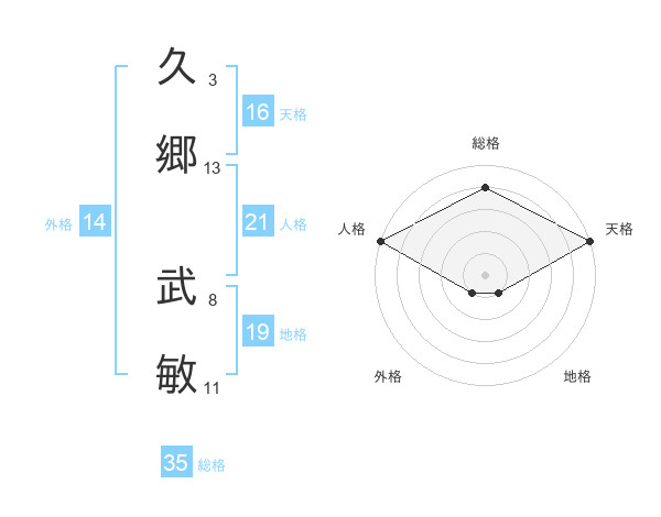久郷 武敏さんを姓名の画数から五運を鑑定