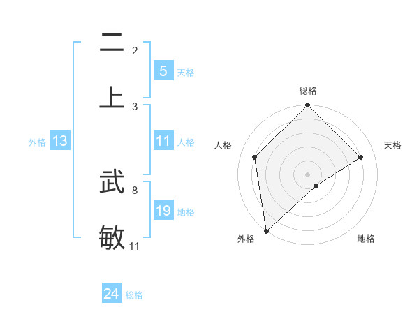二上 武敏さんの外格は13画の5点!