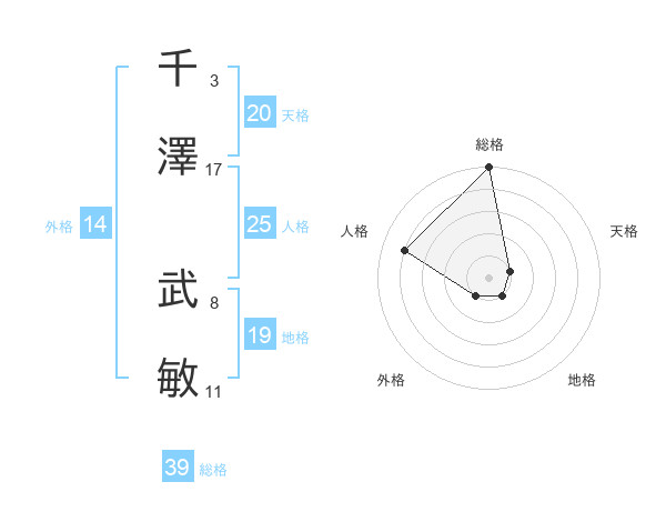 千澤 武敏さんを姓名の画数から五運を鑑定