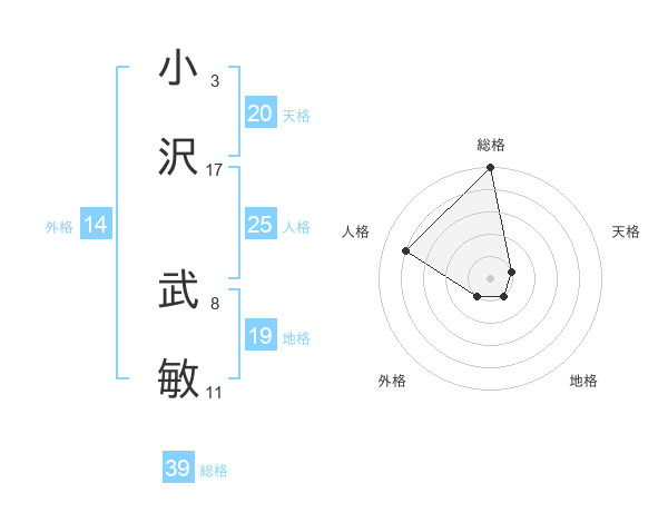 小沢 武敏さんを姓名の画数から五運を鑑定