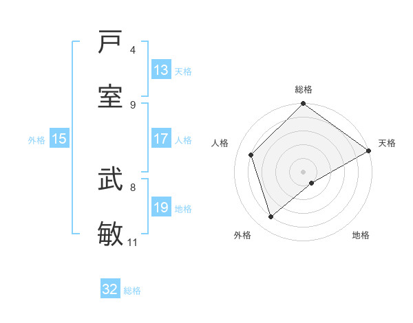 戸室 武敏さんを姓名の画数から五運を鑑定