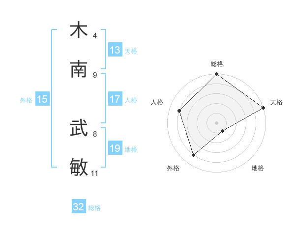 木南 武敏さんの天格は13画の5点!